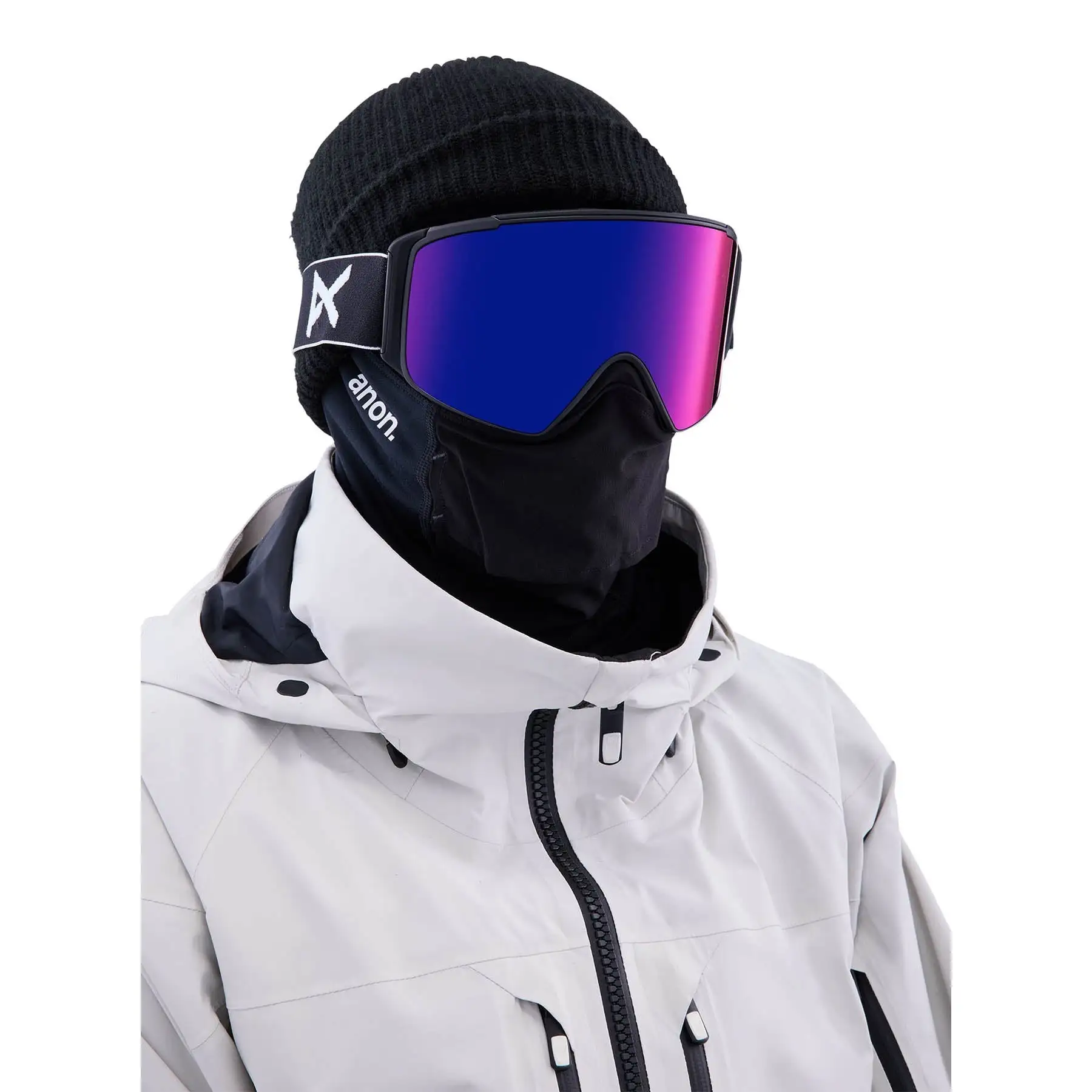 Anons Magnetic Facemask Integration technology provides a seamless facemask to goggle seal, held in place with magnets to reduce pressure on your face, keep your facemask secure, and thanks to the reinforced perforated O2 vents in the Anon MFI facemask, keep you fog free.