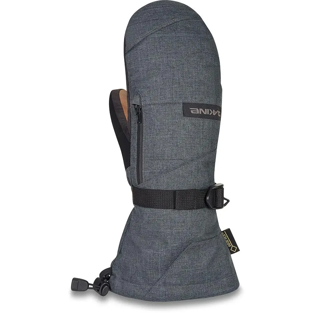 The 2020 Dakine Leather GORE-TEX titan mitten is loaded with high tech features to make riding in any condition comfortable. Featuring both GORE-TEX waterproofing insert and GORE warm technology, the Titan glove is the practical option. Going one step further, an external waterproof zippered stash pocket is featured, allowing for extra storage or even a potential heat warmer, sure to keep you extra warm.