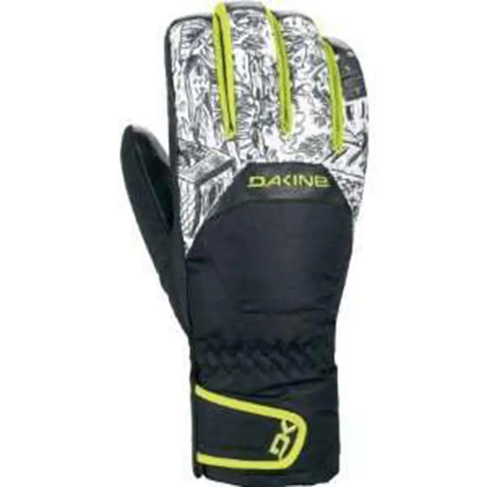 The Dakine Men’s Nova Snowboarding Glove is perfect for those really brisk bluebird days. High-loft insulation gives the Nova heavyweight warmth for winter’s coldest temps, and the DK Dry coated shell sheds snow spray with reliable water-resistance. Dakine added a a leather palm for durability and good grip.